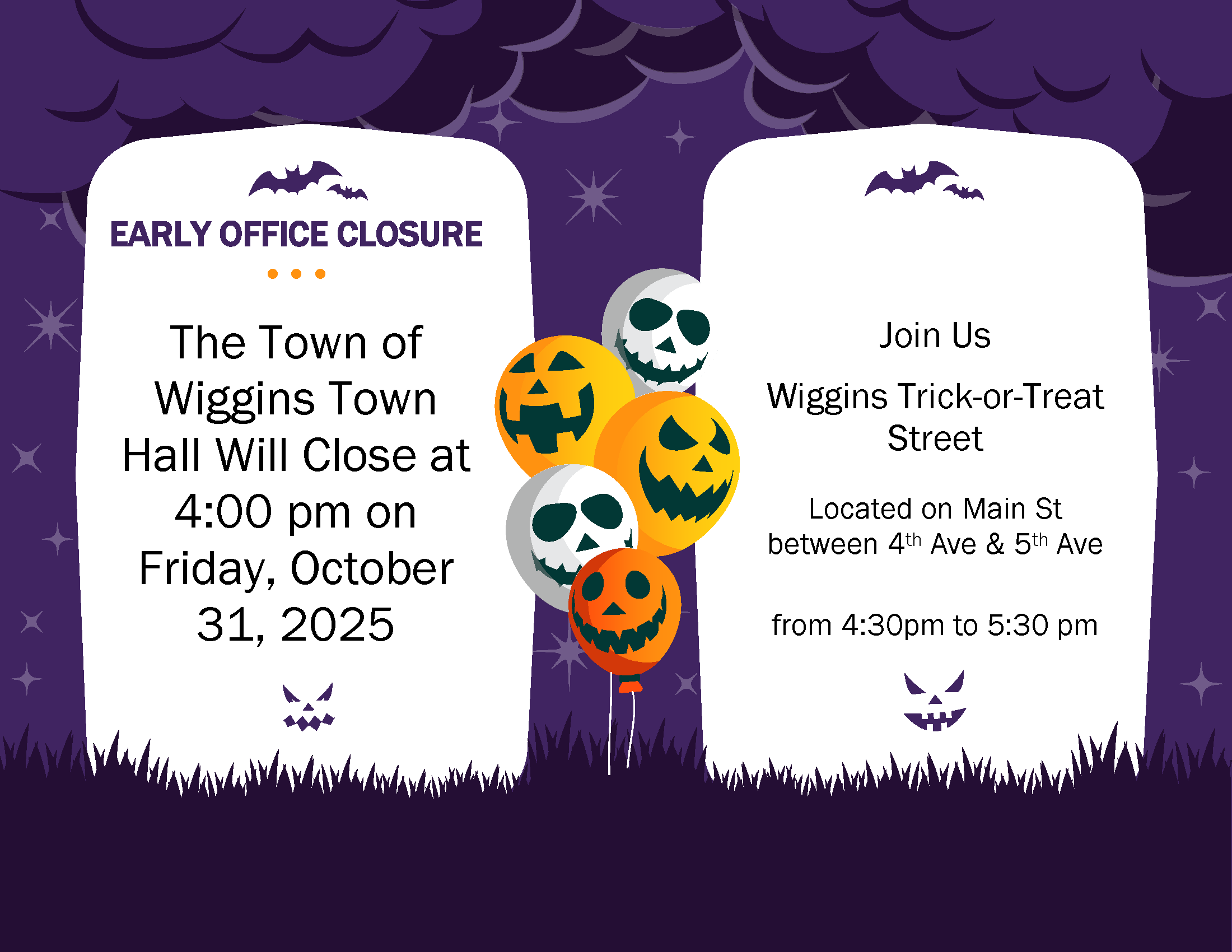 We welcome your requests for accommodations and feedback about the accessibility of Town of Wiggins online services. Please let us know if you encounter accessibility barriers. The Town of Wiggins is committed to responding within one business day.